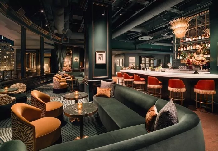 The heart of the hotel is its famous lounge, where you step into the most beautiful room decorated with furniture from ‘back then’ – just in a newer version. Colourful fabric-covered lounge furniture with fringes and tassels draws parallels to the heyday of the 30s. In addition to the fantastic interior, there is the stunning view. The lounge offers panoramic views of the city, and there are not many better places to enjoy an afternoon tea, a cocktail or participate in a wine tasting.