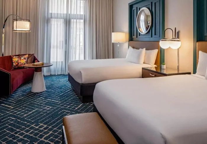 The rooms are decorated in a pure boutique style, where the original pompous expression has been immortalised in a modern interpretation in light colours. In connection with the renovation of the hotel, a specially designed San Francisco wallpaper with the city’s iconic landmarks was produced, adding the final touch to the charm of the rooms. The rooms are furnished with facilities such as TV, Wi-Fi, mini-fridge, tea and coffee making facilities, blackout curtains, and a private bathroom with a small selection of free toiletries.
