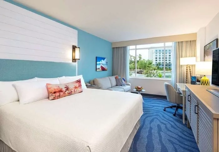 Loews Sapphire Falls Resort is within walking distance of the Universal Studios theme park, which is easily reached via the constructed path, or you can use the resort’s free water taxi, which will take you close to the entrance to the park. If you are visiting Disney World, you can get there with a manageable drive of about 20 minutes.
