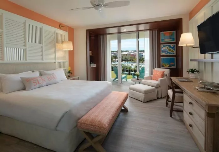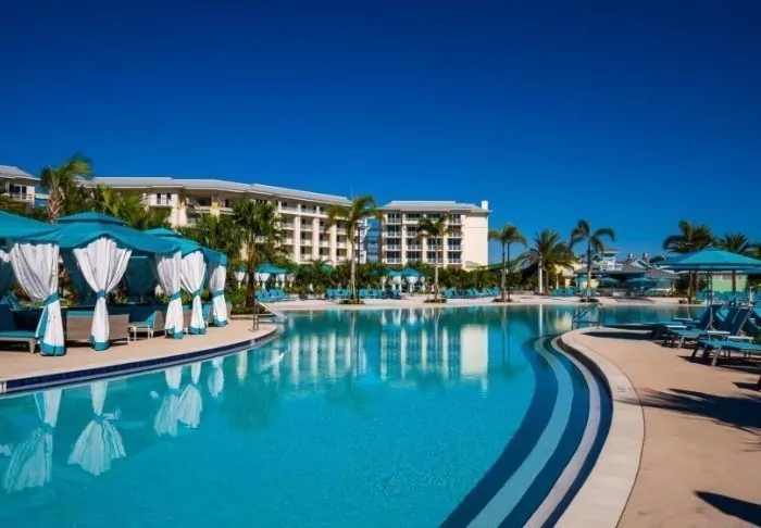 Oceans Edge Resort & Marina is built in a beautiful Caribbean style, a look that characterises the entire resort, both inside and out. The white wooden houses contrast beautifully with the green oases, and feature as many as six heated saltwater pools. While you lie in the water and feel the calm descend, you can enjoy the sound of swaying palm trees and waves lapping against the boats in the marina in the background.