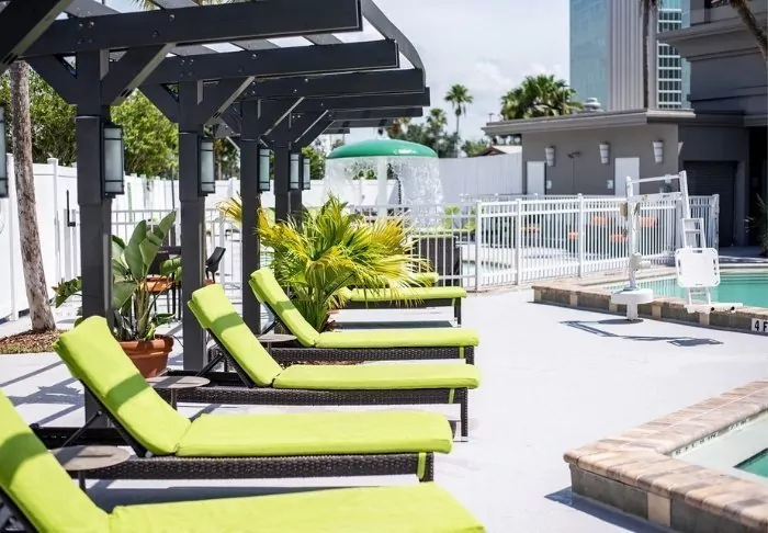 The hotel’s pool area is perfect for a dip followed by a relaxing spell on the sun loungers if you are looking for a change to Florida’s many beaches. You will also find a modern gym and a tennis court if you want to keep in shape.