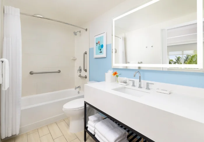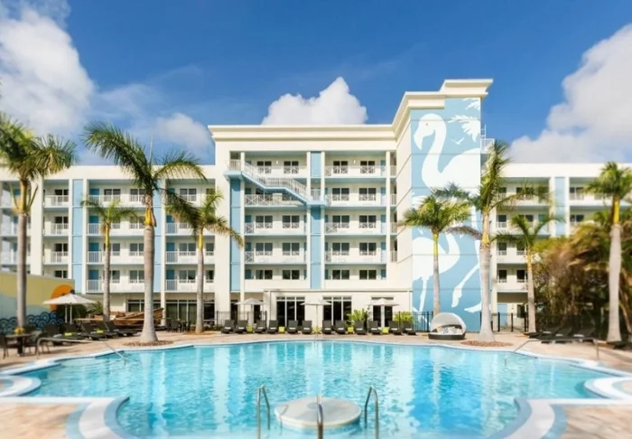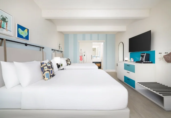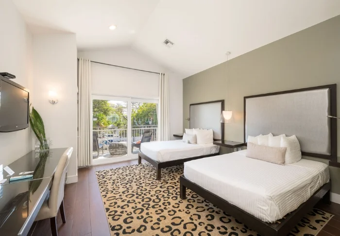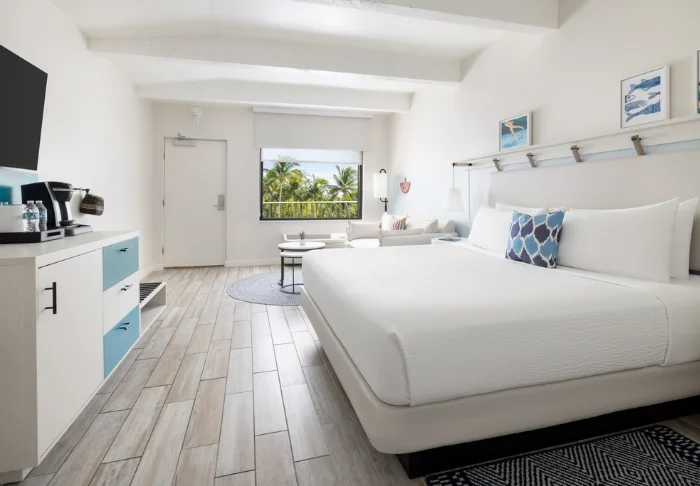 Blue Flamingo Resort Key West offers 100 light and airy rooms in a contemporary style. The rooms feature beds and wall cladding made from recycled wood, which ensures a pleasant and relaxed atmosphere. All the rooms have a TV, Wi-Fi, coffee-maker, minibar, air-conditioning and an en suite bathroom with hairdryer and bathrobes.
