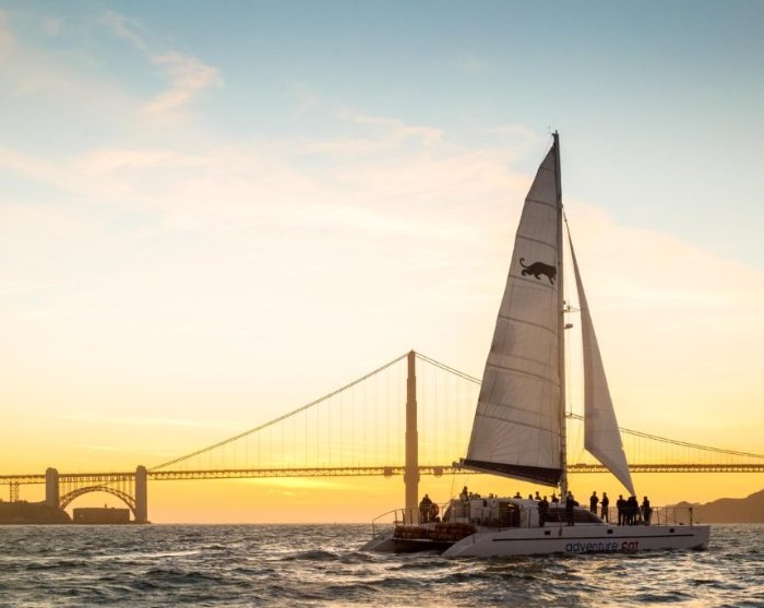 Picture yourself standing on the deck of a catamaran in San Francisco Bay, heading towards the Golden Gate Bridge itself with the lights from the mainland sparkling as darkness falls. That’s precisely what you’ll be doing on this excursion.