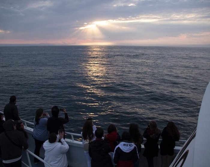 The excursion takes place aboard one of the largest boats (110 feet) in the Monterey fleet, and you can either stay out on deck or indoors in the heated lounges. When on board, you can choose to upgrade to the upper VIP deck (for a fee – first come, first served). There are toilet facilities on board.
