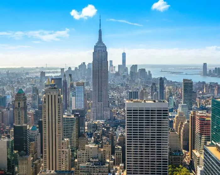 New York City – or the ‘The Big Apple’ as it is often called – comprises five districts: Manhattan, Brooklyn, Queens, The Bronx, and Staten Island. The city is known for its iconic sights, such as the Statue of Liberty, the Empire State Building and Central Park.