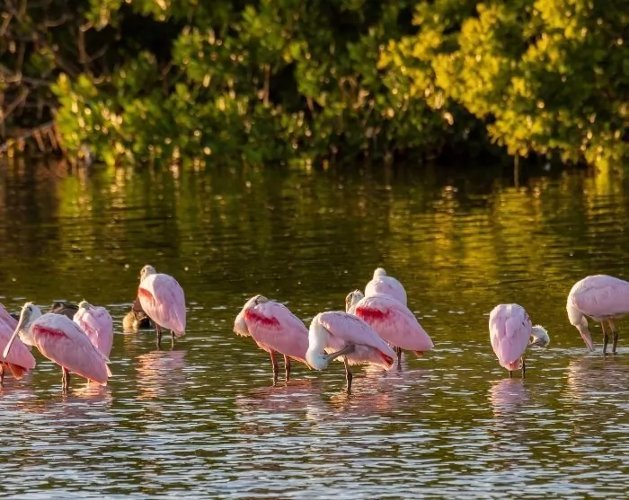 At Sanibel, you can go kayaking in Tarpon Bay, rent bicycles and explore the small coves. You can also find special seashells at Bowman’s Beach (but remember that you cannot take the shells with you). At Sanibel, you will also find the famous J.N. “Ding” Darling National Wildlife Refuge, which is one of the largest mangrove ecosystems in the USA. The reserve is home to more than 245 different species of birds, including the beautiful pink roseate spoonbill, which attracts many bird enthusiasts every year.