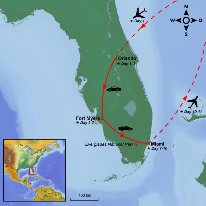 Longing to relax on Florida’s paradisiacal beaches? Would you like to experience the Everglades, Cuban culture in Miami and entertainment in Orlando? Then this self-drive adventure is just for you.