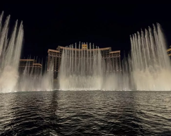 After a day of driving, you might need a break: once settled in your room, a swim in the pool could be the ideal way to stretch out. If you feel like going out, finish your day with dinner at one of Las Vegas’s many restaurants and take in the famous fountain show outside the Bellagio Hotel. Since opening in 1998, this impressive water display, accompanied by classical music, has entertained passers-by.