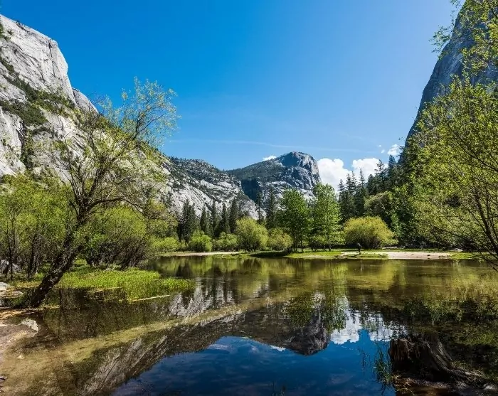 In the park, you’re greeted by spectacular waterfalls cascading from dramatic cliffs. Yosemite has something for every level of difficulty and age, and you don’t need to venture far to witness popular natural attractions. A great place to start is at Lower Yosemite Falls, which is easily accessible, or Mirror Lake, reflecting the surrounding mountains on its water surface. You’re welcome to seek guidance on suitable routes at the Welcome Center.