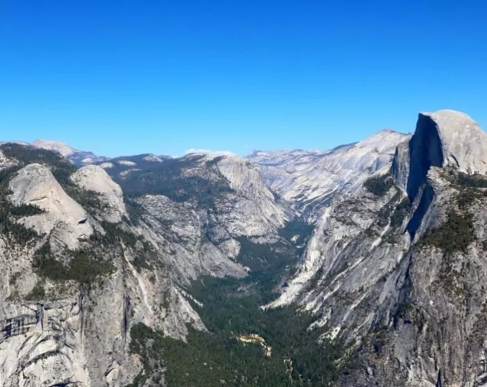In the summer months, when the snow has melted, Glacier Point is an unmissable viewpoint situated at around 2200 metres. You can drive up there by car or book a bus tour (bookings are made directly in the park on a first-come, first-served basis or via a phone pre-book, which you can read more about here). If you’re up for a hike from Glacier Point, you can take the bus up and hike down the Four Mile Trail.