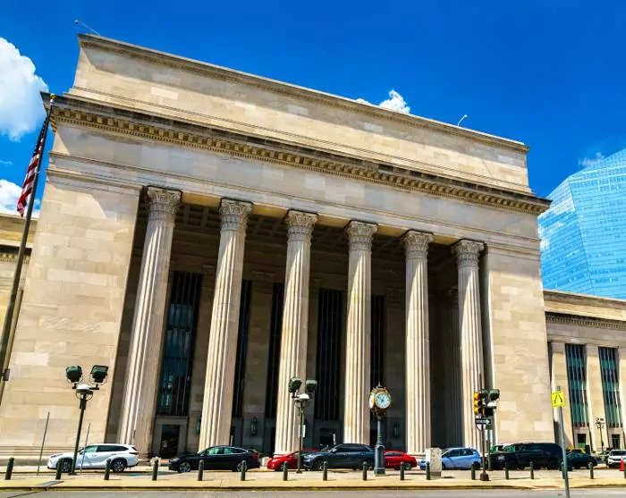 Take an Uber or taxi to Union Station in D.C., which is just a few kilometres from your hotel. Please make sure to arrive in due time before departure – from Washington D.C. no later than 30 minutes before (details of meeting time, place and departure are provided on your voucher.) The train ride to Philadelphia takes just under two hours, so sit back in your seat and watch the scenery pass by en route.