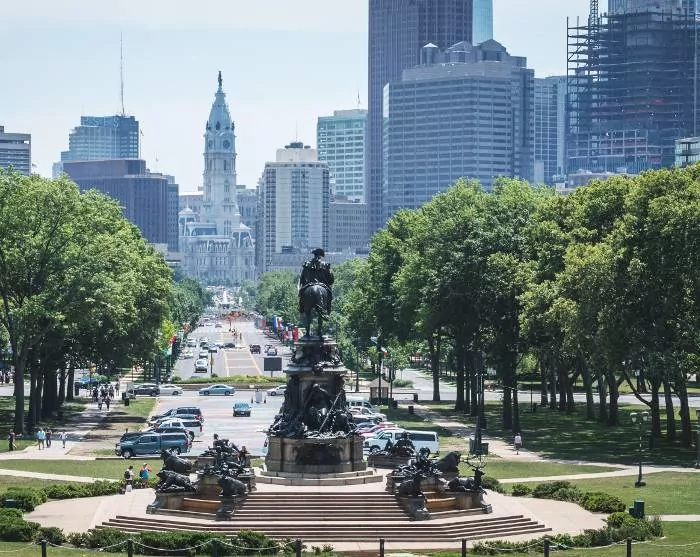 Proceed to the Philadelphia Museum of Art, where you will see people with their arms raised in the air and flexed upper arms at Rocky Steps, which you may recognise from the famous Rocky movies.