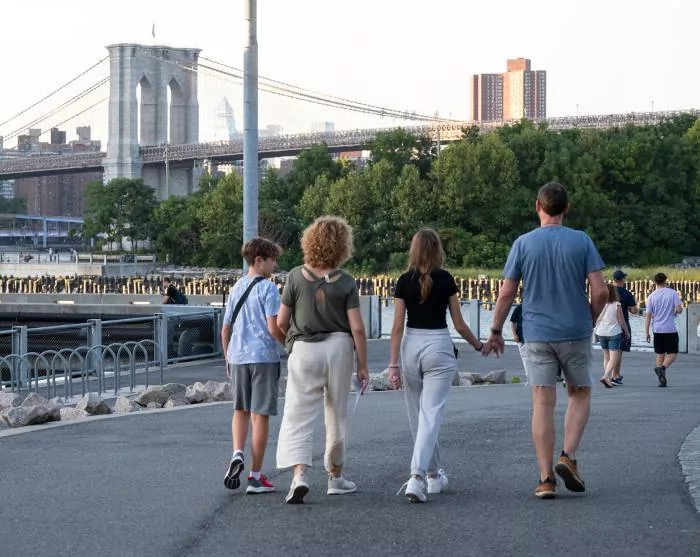 It is highly recommended to walk or cycle the beautiful trip to the borough of Brooklyn via the famous bridge of love, Brooklyn Bridge, and possibly return via Manhattan Bridge. On the Brooklyn side, you can enjoy a refreshment with views of the city from the DUMBO area, which is located between the two bridges.