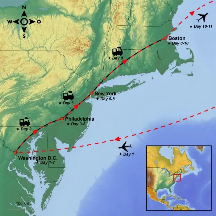 Experience the East Coast and gain insight into American history, superpower and culture on a train journey to four of the most important cities of the United States: Washington D.C., Philadelphia, New York & Boston.