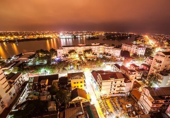 White Lotus Hué boasts a prime location in Hué’s modern quarter, just a couple of minutes’ walk from the Perfume River and within easy strolling distance of restaurants, shops, and local markets. This contemporary hotel stands tall with mountain views, making a striking contrast to the historic imperial city on the river’s far side.