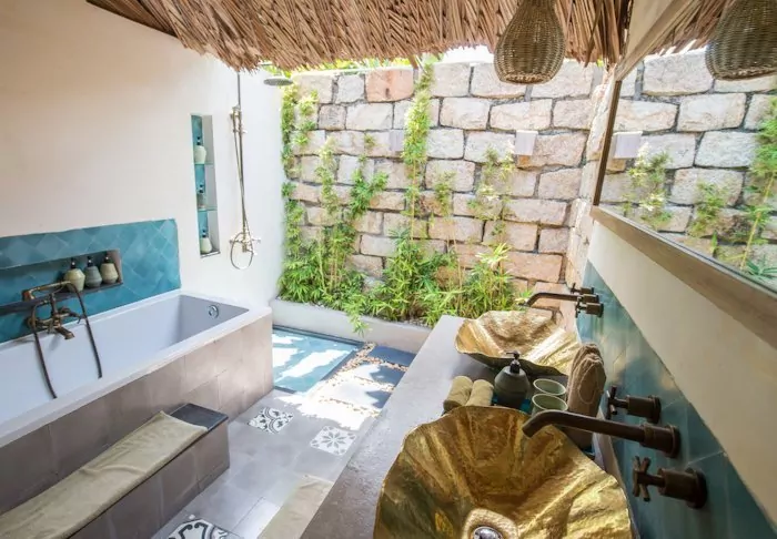 The rooms are tastefully decorated in an attractive combination of natural colours spiced with pops of contrasting colour on the pillows and bed covers, for example. The bathrooms are partially open to the outdoors, so you can feel the breeze and smell the garden. All rooms have air conditioning, a minibar, tea and coffee making facilities, a safe, Wi-Fi, a flat screen TV, a mosquito net and a private veranda.