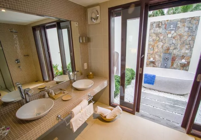 The resort has 3 restaurants. The main restaurant, Green Bay Restaurant, is an outdoor restaurant that all day serves dishes from both the East and the West, as well as delicious fish and shellfish dishes. The restaurant is also where the lavish breakfast buffet is served. Coral Bay Restaurant sits by the water’s edge and offers snacks and small, healthy dishes made with local ingredients. This is also where you can enjoy the sunset with a “sundowner” drink on the porch, and when dinner is served in the evening, the emphasis is on the Vietnamese kitchen. At the water’s edge, you will also find Rock Bay Restaurant and Bar, which focuses on fish, shellfish, global gastronomy and cocktails. What all the restaurants have in common is that they use organic ingredients, including herbs and vegetables from their own gardens.