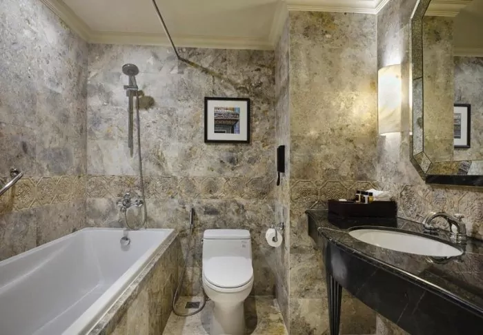 The hotel features two types of rooms: the Garden View and River View. Both room types are equipped with air conditioning, Wi-Fi, a minibar, a safety box, and a spacious bathroom with a shower and a bathtub.