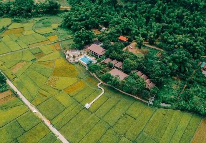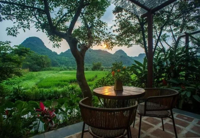 Situated in the scenic countryside south of Hanoi, nestled between the rice fields and limestone mountains, is the quiet and peaceful Tam Coc Rice Fields Resort.
