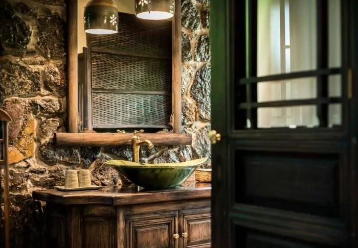 That beautiful, natural and rustic design can be found in the big, spacious rooms of at least 70 m² as well. All the rooms feature Wi-Fi, air conditioning, a ceiling fan, mini-bar, safe and a big, lovely bathroom with a hair dryer, bath robes as well as a shower and bathtub. From the terrace, you can enjoy the calm and the green surroundings.