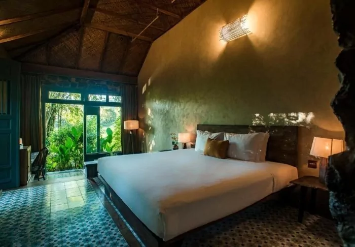 Here there are 26 bungalows. They are built from stone, allowing them to almost naturally blend in with their mountainside surroundings. All rooms are modern and feature minimalist interiors, making particular use of stone and wood in their decoration. The colours are muted to fit the contrasts found outside the windows. All rooms feature their own bath and toilet, TV, mini bar, hair dryer, tea/coffee facilities and terrace access. Both sunrise and sunset are magical experiences from the hotel. The lodge has a pool and its own restaurant.