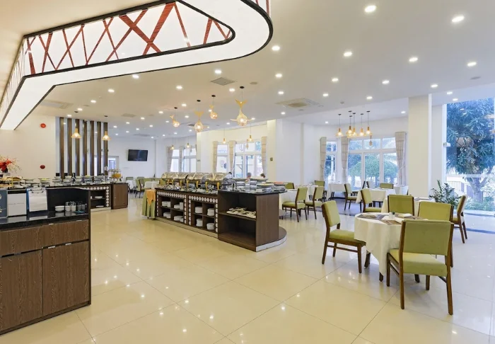 The hotel’s restaurant serves both Vietnamese and international cuisine, while breakfast is a buffet spread with fresh fruit, home-baked bread, and hot dishes.