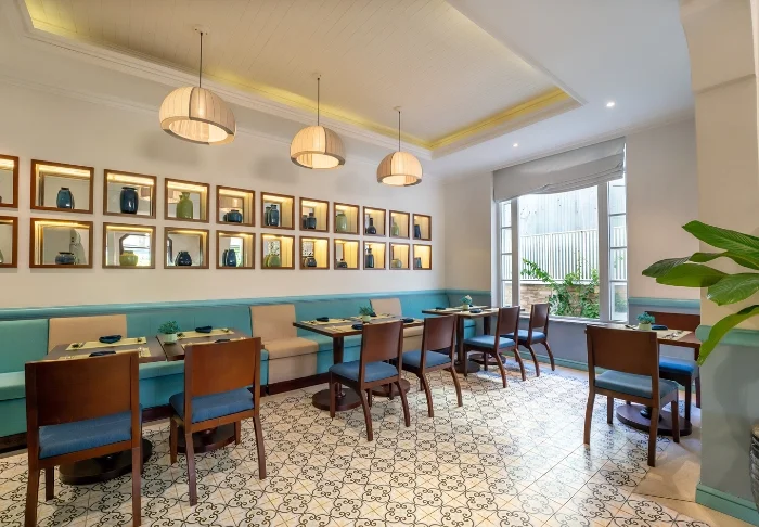 The restaurant, Le Comptoir de Marthe et Edouard, is named after the owner’s grandparents and offers a delightful fusion of Vietnamese and French cuisine. Chef Vo Quoc Thach leads the kitchen, creating a menu where local ingredients are paired with classic French techniques. You can savour these dishes on the terrace overlooking the river as the sun sets.