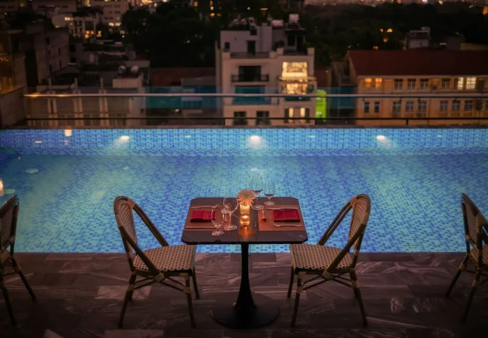 The hotel’s restaurant, November, is located on the top floor and serves seasonal dishes featuring both Vietnamese and European flavours. Here, you can enjoy dinner in a tranquil setting with views across the city. You may also choose to round off your day in the hotel bar, Bar Dinh – an elegant rooftop lounge offering expertly crafted cocktails and panoramic views over Hanoi.