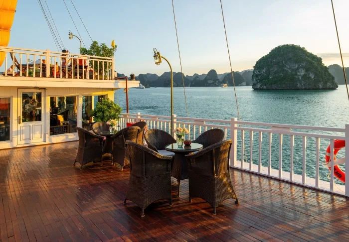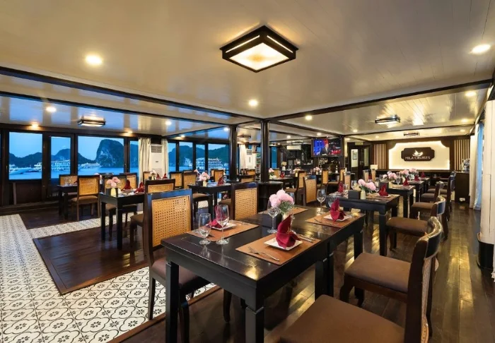 The restaurant offers a selection of both Vietnamese and international dishes, all prepared using high-quality ingredients. The ambiance is stylish, and dining on deck with the sunset as your backdrop is sure to be one of the highlights of your tour.