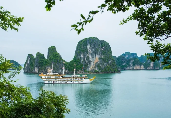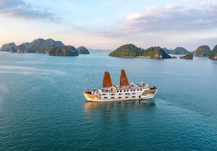 The Dragon Legend Cruise sets sail from Hon Gai port in Ha Long, whisking you away on an adventure through Bai Tu Long Bay. Here, you’ll glide among thousands of limestone islands and secluded lagoons, far removed from the busier routes. The atmosphere on board manages to be both relaxed and exclusive, tailored for travellers seeking both tranquillity and a sense of connection.
