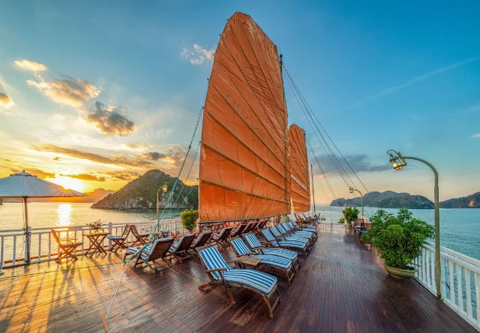 Indochina Sails takes the cruising experience in Ha Long Bay to another level. Aboard this elegant wooden ship, with just 23 cabins, you’ll instantly sense a truly exclusive ambience, where impeccable service, attention to detail, and atmosphere all work in perfect harmony. For decades, the ship has stood out among the most highly regarded in the bay and is famed for its exceptional standards.