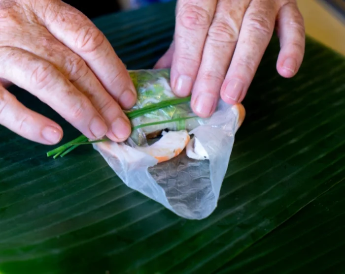 After around 25 minutes, you’ll arrive at the Red Bridge Cooking School, where a tour of the lush herb garden awaits before you don your apron and get cooking. The class itself lasts approximately two hours, held in a relaxed yet educational atmosphere. First, the chefs will demonstrate how to prepare each dish, then it’s your turn to try your hand.