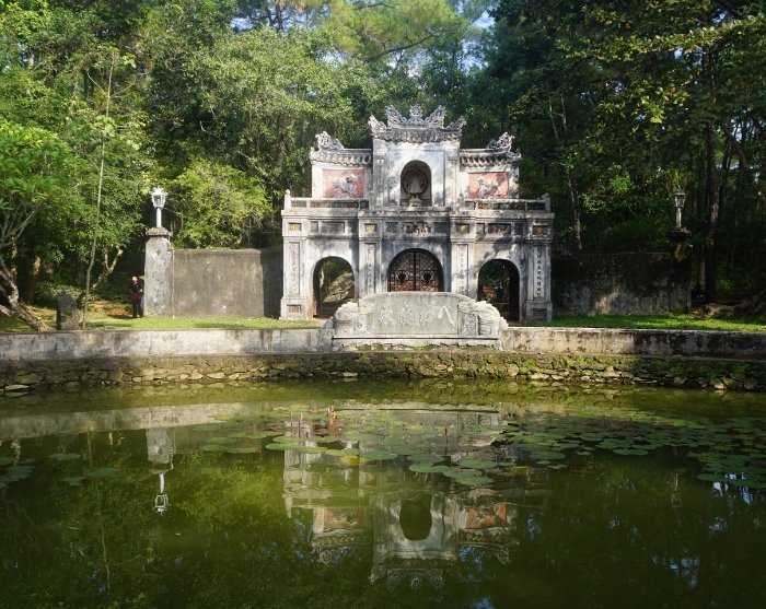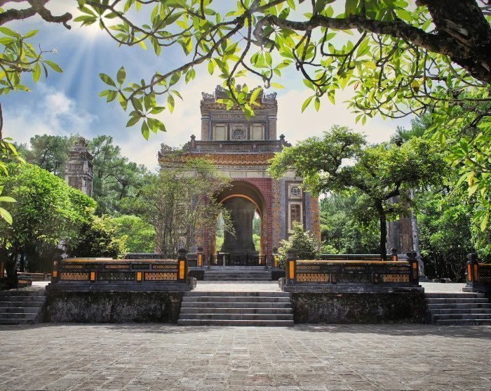 Your guide will pick you up from your hotel and take you to Emperor Tu Duc’s estate and burial site, situated in a scenic valley near Hué. Tu Duc was the fourth emperor of the Nguyen dynasty in Vietnam, ruling from 1847 until his death in 1883. He constructed the estate as a paradise where he could find space for peace and reflection. The emperor spent his final years here, surrounded by lush forests, peaceful walking paths, and beautiful pavilions where he could indulge in his poetic talents. The emperor’s tomb is beautifully located at the end of a lagoon, and the area exudes a harmonious blend of impressive architecture and natural beauty. Despite building his own tomb on the grounds, Emperor Tu Duc is not actually buried here; instead, his remains were interred at an unknown location, guarded by thousands of servants who were executed to keep the grave’s location a secret. This has added a mysterious atmosphere to the site.