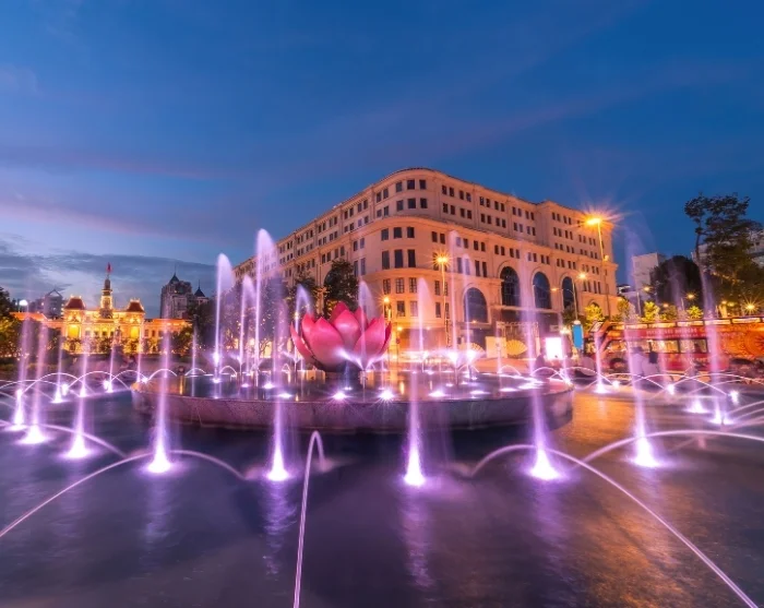 Around dusk, take a leisurely stroll down Nguyen Hue promenade, lined with flowers, fountains, and charming architecture. Here, you’ll experience the city’s unique character as locals gather with street performers, dancers, and young families in a lively and enchanting atmosphere. The vibe is relaxed yet vibrant, reaching its peak around the beautifully illuminated town hall.
