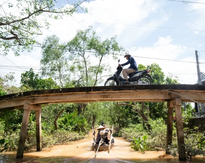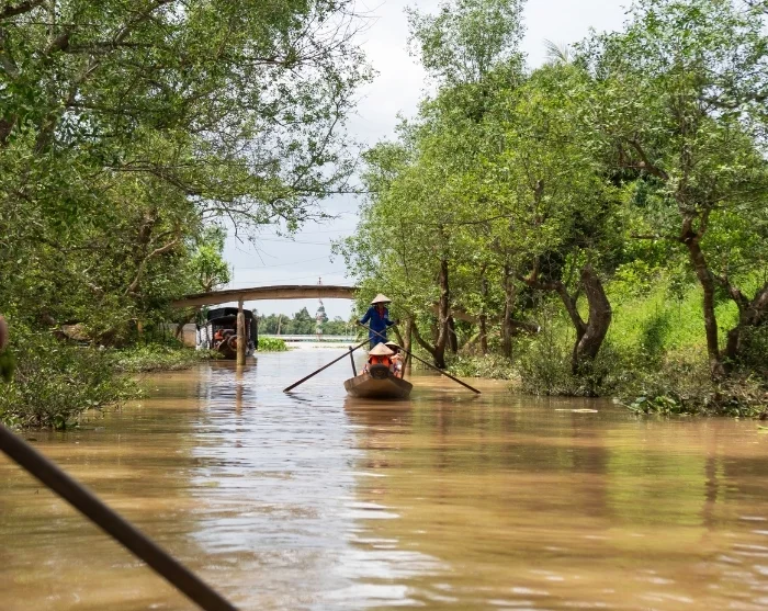 You’ll also explore the lush Mekong Delta, gliding between swaying palms and narrow canals, and visit a sustainability project in Vinh Long. Here, you’ll meet the local people and gain a real insight into rural life.