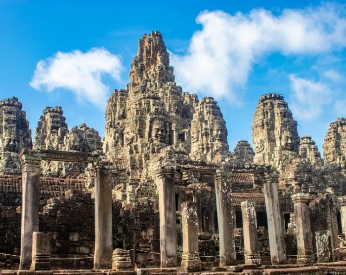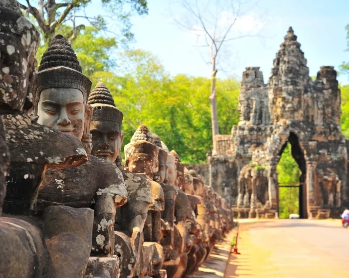 Your day begins at the South Gate of Angkor Thom, where statues of both benevolent and sinister gods guard the entrance. From here, you’ll make your way to the iconic Bayon temple, famous for its hundreds of smiling faces adorning the tall towers. The intricate bas-reliefs are particularly striking, depicting scenes of daily life as well as dramatic battles between the Khmer and the ancient Thais.