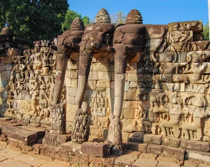 Discover the Elephant Terrace, where an extensive wall is decorated with rows of intricately carved elephant heads. From here, King Jayavarman once surveyed his army. Nearby, you’ll find the Terrace of the Leper King, which features a statue of Yama, the Hindu god of death.
