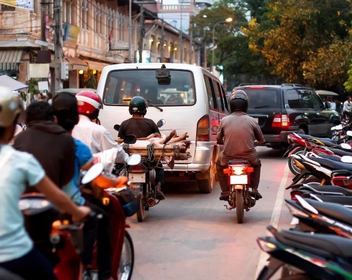 Siem Reap is a laid-back and charming town that invites you to stroll through the French Quarter or along the banks of the shaded Siem Reap River. Here, you’ll discover little shops, cafés, and bustling markets. In the evening, explore the lively night market, where the mouth-watering aroma of Khmer delicacies fills the air. Tuck into a tasty grilled meat skewer or a spicy noodle dish, and take a seat on one of the many stools among the locals, who gather to enjoy a bite to eat. Feeling adventurous? You might even try a grilled cricket on a skewer.