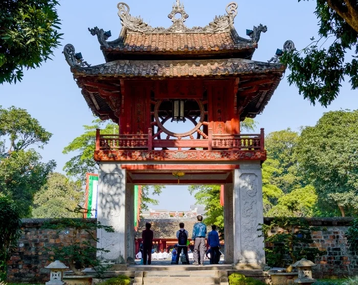 Next, you’ll be driven to the Temple of Literature – a tranquil complex dating back to the 12th century, founded by followers of the Chinese philosopher Confucius. With nearly a millennium of history, the temple is a rare and beautifully preserved example of traditional Vietnamese architecture, complete with colonnades, ponds, and lush courtyards where even today, young students come to seek good fortune for their exams.