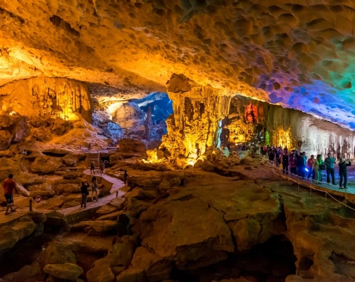 The tour then continues to Sung Sot Cave, the largest and most impressive limestone cavern in Ha Long Bay. Inside, you’ll be rewarded with a magical landscape of stalactites and stalagmites, painstakingly formed over millions of years. We recommend wearing comfortable, closed shoes—especially if the weather is wet.