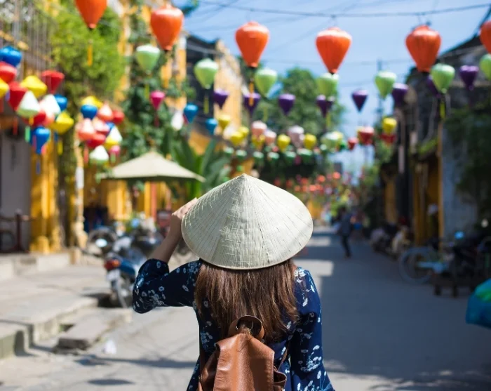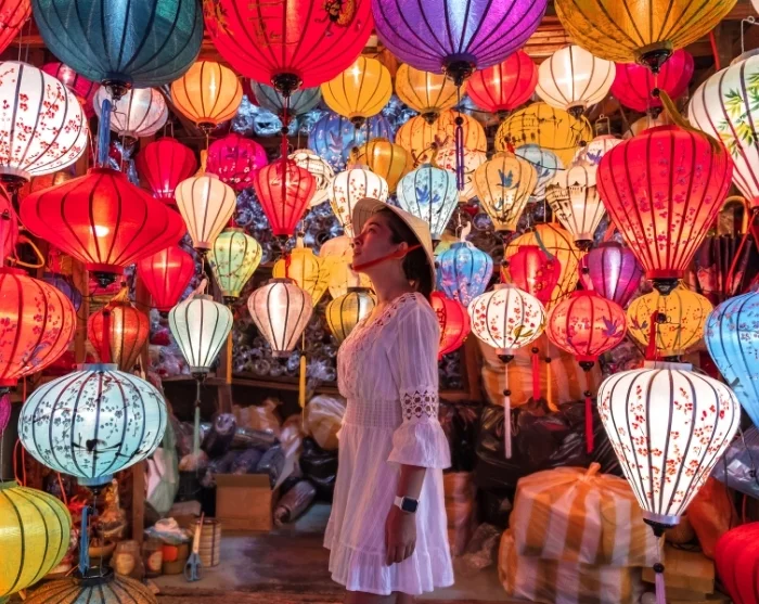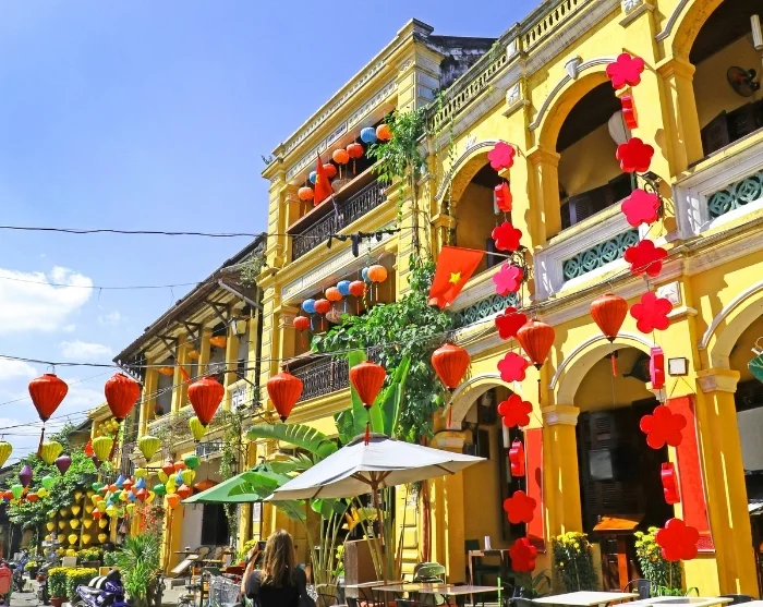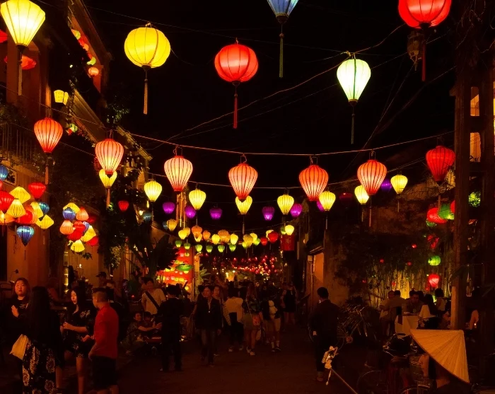Beyond the riverbanks, a labyrinth of atmospheric little streets unfolds. Here, you’ll encounter a vibrant blend of Japanese timber houses, Chinese assembly halls, French colonial-era buildings, and those distinctive merchant houses. Colourful lanterns hang in strings above the streets, setting a magical scene—especially as night begins to fall. Shops, street food stalls, cosy cafés, and small restaurants line the streets like pearls on a string, inviting you to soak up the relaxed ambiance or set off on a journey of discovery.