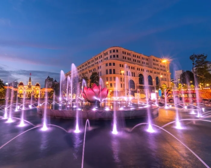 Around dusk, you can take a leisurely stroll along the Nguyen Hue promenade, lined with flowers, fountains, and atmospheric architecture. Here, you’ll get a true sense of city life as locals gather with street performers, dancers, and young families in a charming, bustling mix. The mood is relaxed yet vibrant, crescendoing around the illuminated city hall.