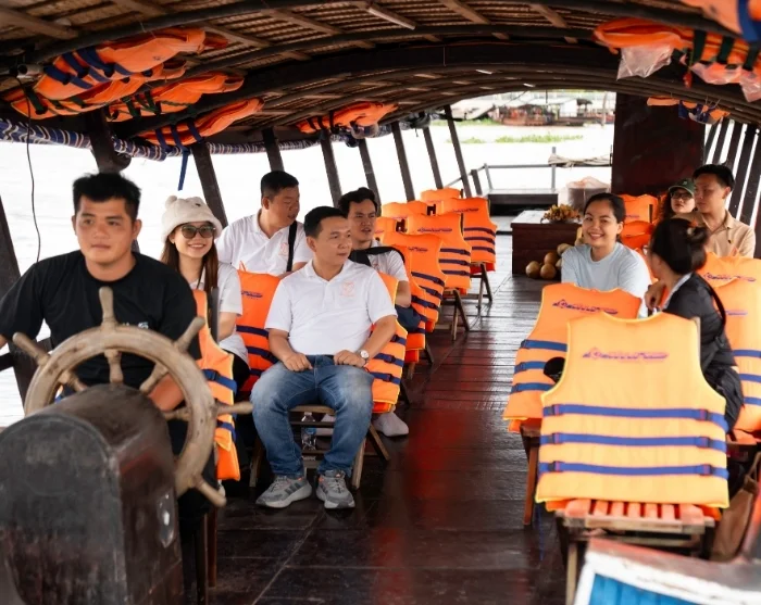 Your boat journey continues to a tranquil island in the heart of the Mekong River, where you’ll savour a Vietnamese lunch prepared with fresh, local ingredients, surrounded by lush greenery and the gentle rhythm of the river’s life.