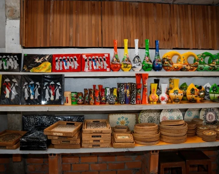 After around 2.5 hours on the road, you’ll reach the town of Cai Be. Here, you’ll board a boat to begin your journey into the lush Mekong Delta. You’ll visit local workshops where skilled artisans craft products from coconut. Your journey continues aboard a small sampan—a traditional, hand-rowed wooden boat—taking you through the Mekong Delta’s narrow, winding channels.