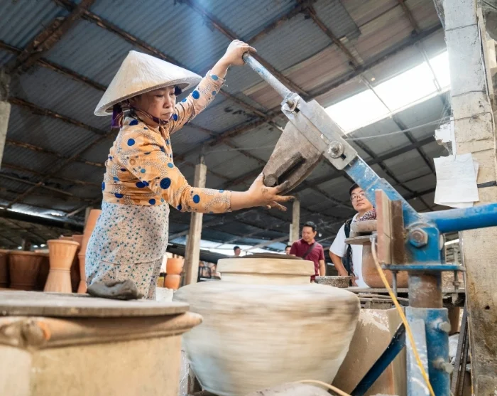 You’ll also explore the Mekong Delta, cruising through its lush waterways and discovering local craft traditions. Enjoy a home-cooked lunch on a small island, and in the village of Vinh Long, meet the locals and learn about a sustainable and social development project that you help support through your tour.