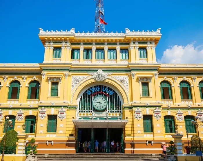 Next, you’ll visit the Old Post Office, designed by world-renowned French engineer Gustave Eiffel. This beautiful structure, with its graceful arches, elegant ironwork, and historic ambiance, stands as a reminder of the French influence on Ho Chi Minh City.