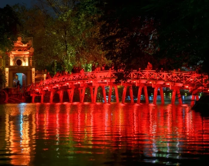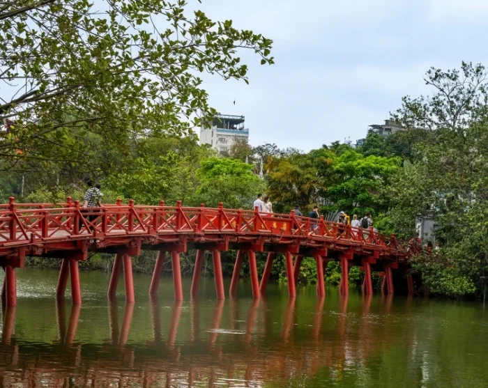 From here, cross the iconic Huc Bridge to reach the Ngoc Son Temple, which sits gracefully in the middle of the beautiful Hoan Kiem Lake. The bridge’s name means ‘the place touched by the sun’s morning rays’. Here, you’ll hear the legend of the emperor, the magical sword, and the giant turtle, and gain insight into how the lake received its name and why it holds such a special significance for the city.