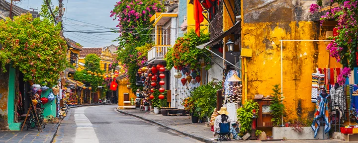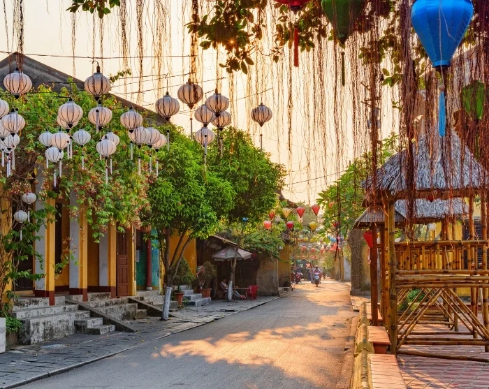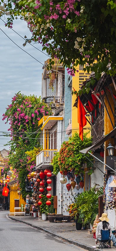 Away from the river, you’ll discover a maze of small, atmospheric streets. Here, you’re greeted by a vibrant blend of Japanese timber houses, Chinese assembly halls, French colonial buildings, and the distinctive merchant houses. Colourful lanterns hang like garlands above the streets, creating a truly special atmosphere – especially once darkness falls. Shops, street food stalls, cafés, and small restaurants dot the lanes like beads on a string, inviting you to unwind, explore, and soak up the unique character of the place.