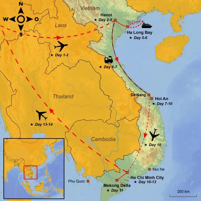 Classic tour from north to south with pretty Hanoi, mini cruise in Ha Long Bay, charming Hoi An, the metropolis of Ho Chi Minh City and the lush Mekong Delta. Extend the tour with a beach holiday.