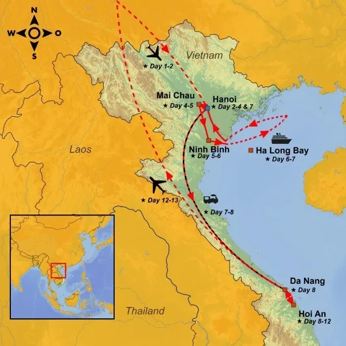 Today is departure day, where you will fly to Hanoi with connecting flights along the way.